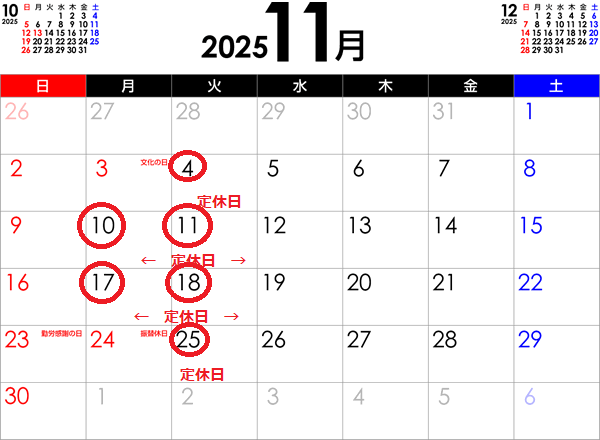 定休日 月曜・第2火曜(祝祭日の場合は翌平日振替定休)